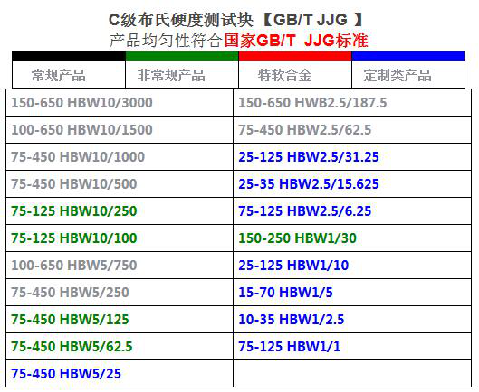 國家標準(GB231-84)規(guī)定布氏硬度試驗時,常用的0.102F/D的比例為30、10、2.5三種,根據(jù)金屬材料的種類、試樣硬度范圍和厚度的不同,按下表(布氏硬度試驗規(guī)范)選擇試驗壓頭(鋼頭)的直徑D、試驗力F及保持時間。