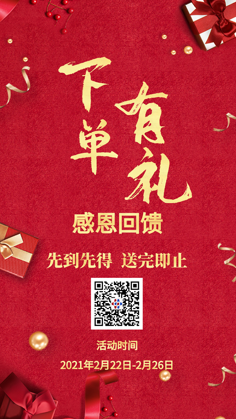 此次推出的“下單即送神秘禮品”活動(dòng),將于2021年2月22日至2月26日進(jìn)行,歡迎廣大客戶積極參與!