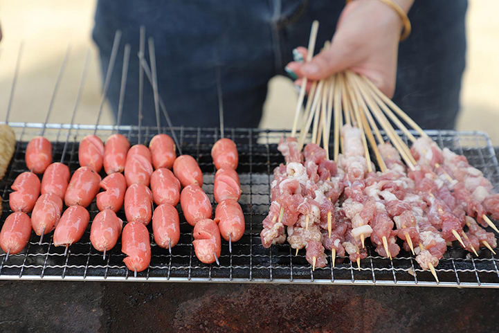 滋啦滋啦冒著汁兒的烤肉、咕嘟咕嘟的柴火雞、花樣繁多的蔬菜和肉串,隨著春風的光顧,總是不時傳來讓人垂涎欲滴的香味,大家已經(jīng)迫不及待地想要品嘗這些美味了。酒足飯飽之后,娛樂活動更是不可少的,撲克牌、蕩秋千、平衡木,各種各樣的娛樂設(shè)施上都有大家的身影,一片歡聲笑語中,美好的一天就度過了。