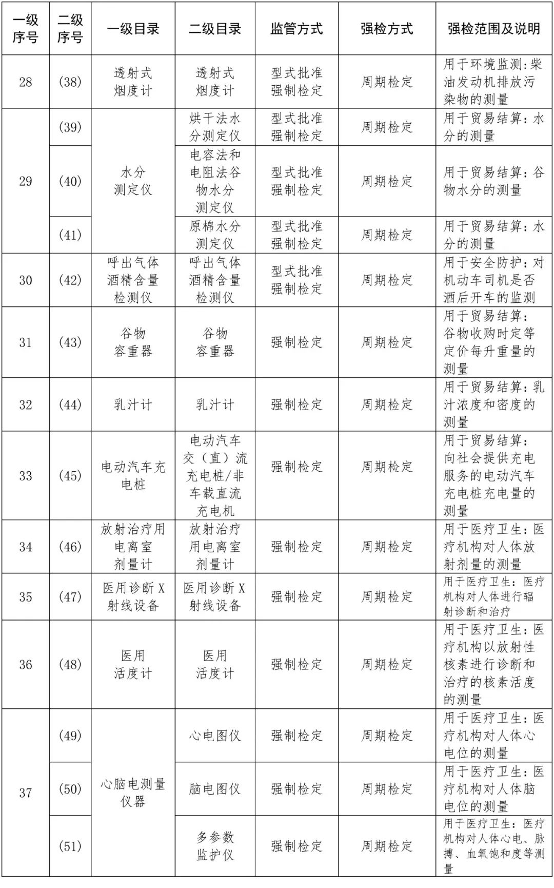 檢定——國家強制檢定:計量基準器;計量標準器;用于貿(mào)易結(jié)算、安全防護、醫(yī)療衛(wèi)生、環(huán)境監(jiān)測的工作計量器具共62種。